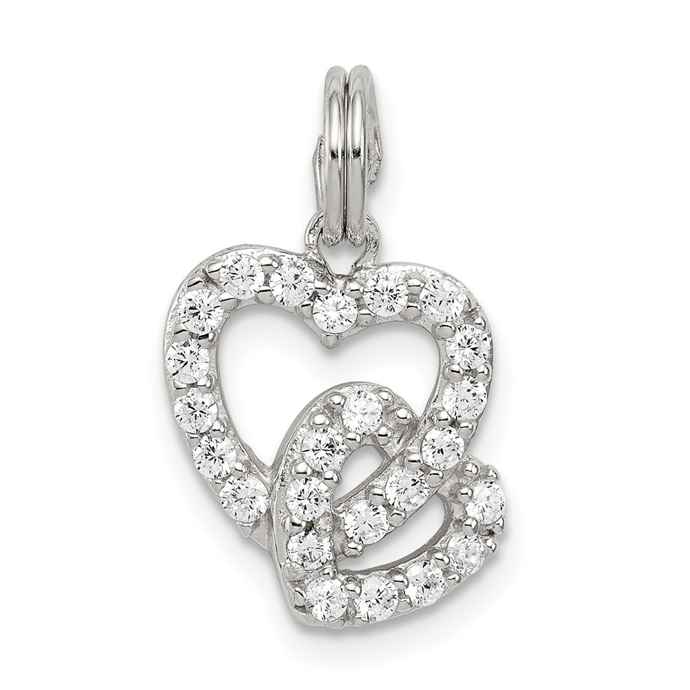 Sterling Silver Rhodium-plated CZ Interlocking Hearts Charm
