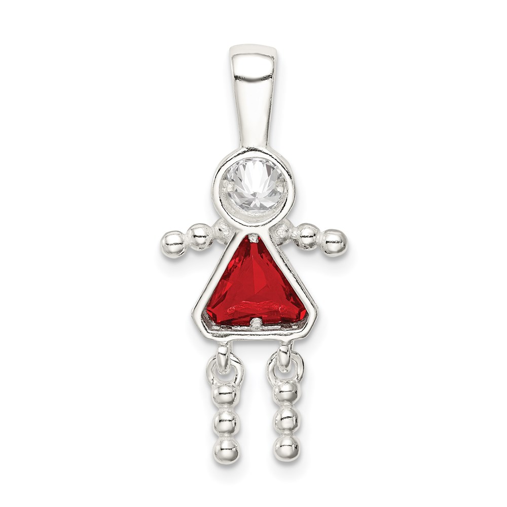 Sterling Silver Rhodium-plated CZ & July Glass Girl Pendant