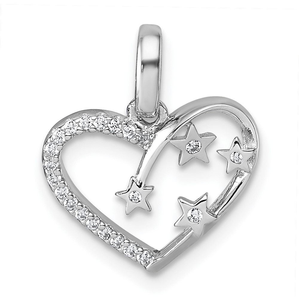 Sterling Silver Rhodium-plated CZ Polished Open Heart with Stars Pendant