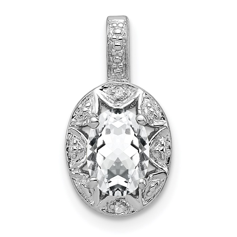 Sterling Silver Rhodium-plated Diam. & White Topaz Pendant