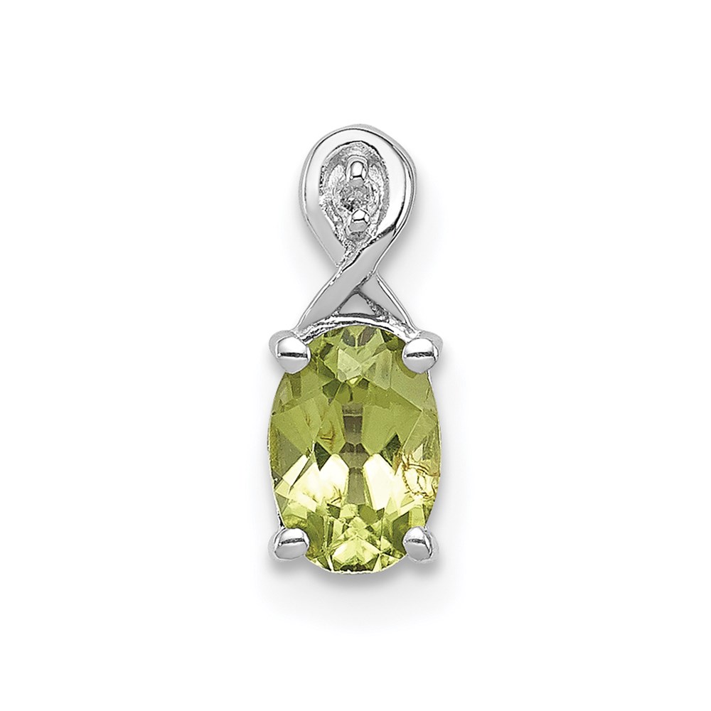 Sterling Silver Rhodium Plated Diamond and Peridot Oval Pendant