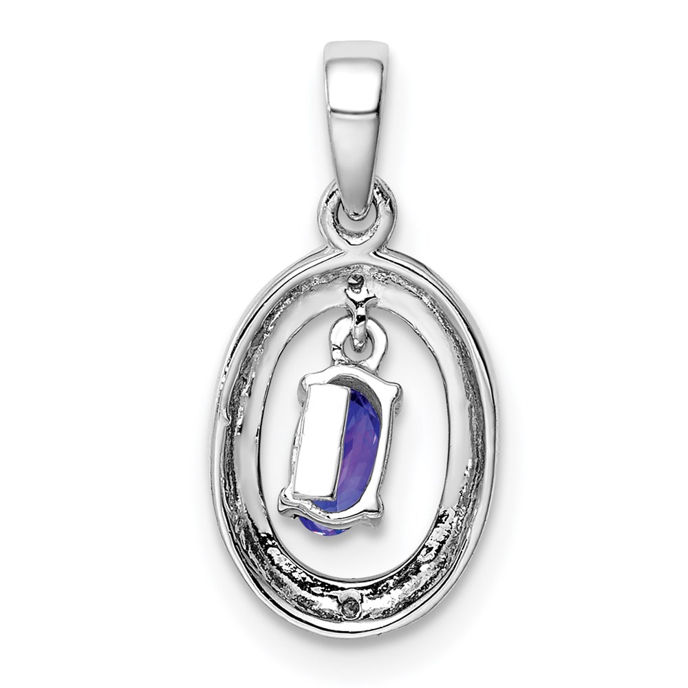 Sterling Silver Rhodium Plated Diamond and Tanzanite Oval Pendant