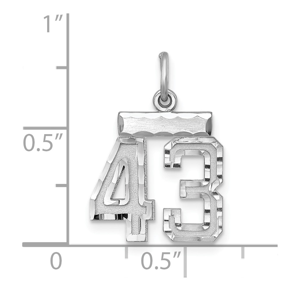 Sterling Silver Rhodium-plated Diamond-cut #43 Charm