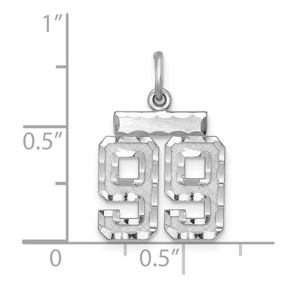 Sterling Silver Rhodium-plated Diamond-cut #99 Charm