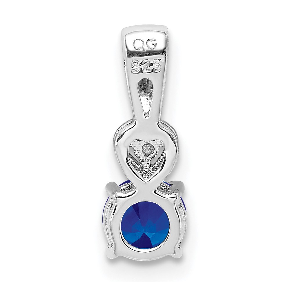 Sterling Silver Rhodium Plated Diamond & Sapphire Round Pendant