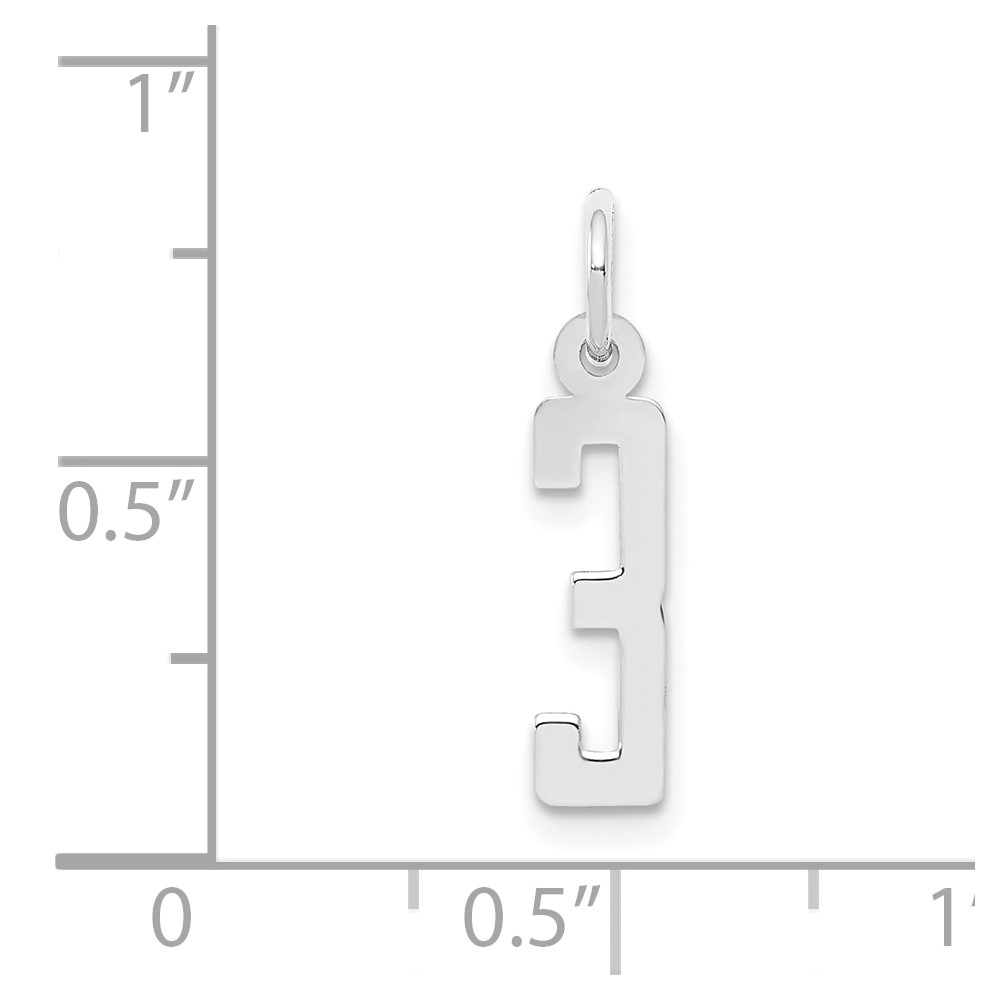 Sterling Silver/Rhodium-plated Elongated Polished Number 3 Charm