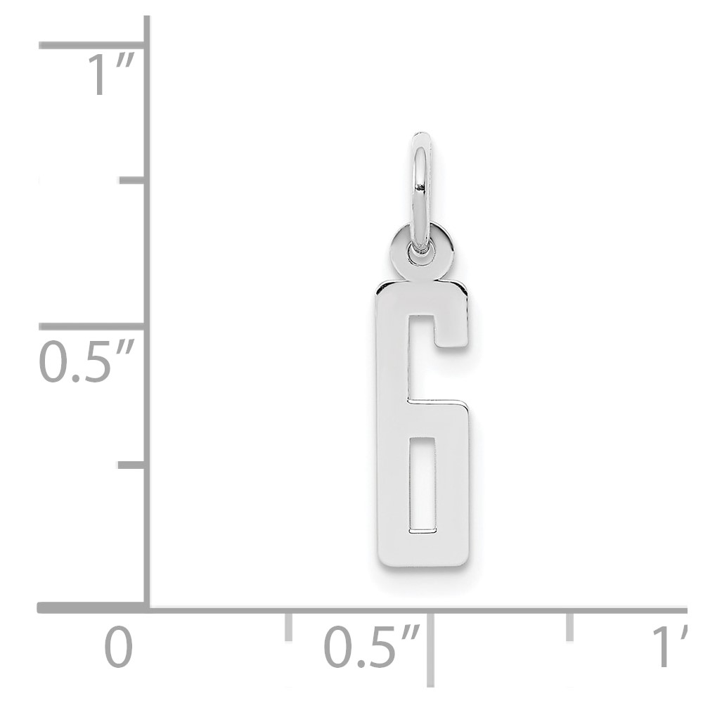 Sterling Silver/Rhodium-plated Elongated Polished Number 6 Charm