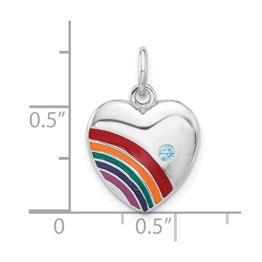 Sterling Silver Rhodium-plated Enameled with CZ Rainbow Heart Pendant