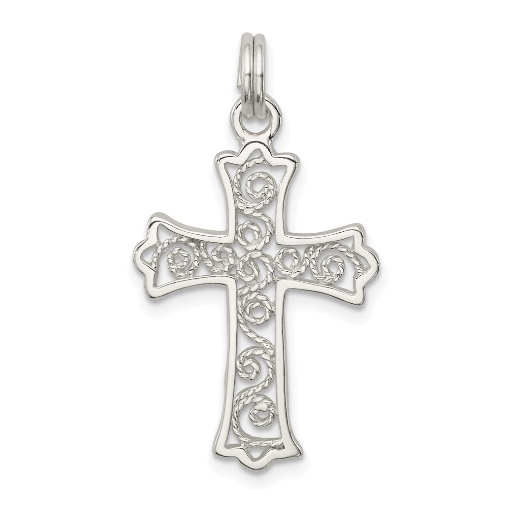 Sterling Silver Rhodium-plated Filigree Cross Charm