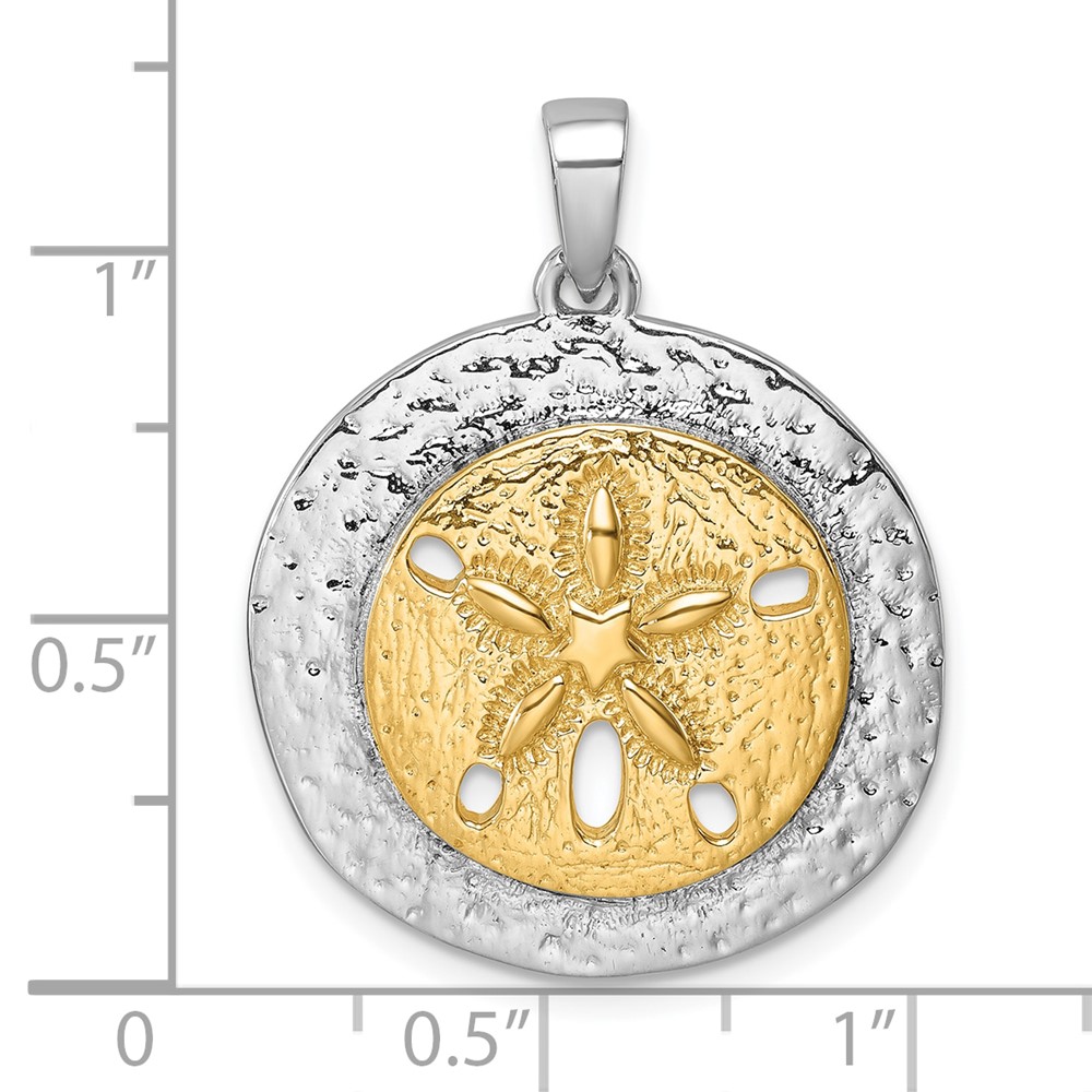 Sterling Silver Rhodium-plated Gold-tone Textured Sand Dollar Pendant