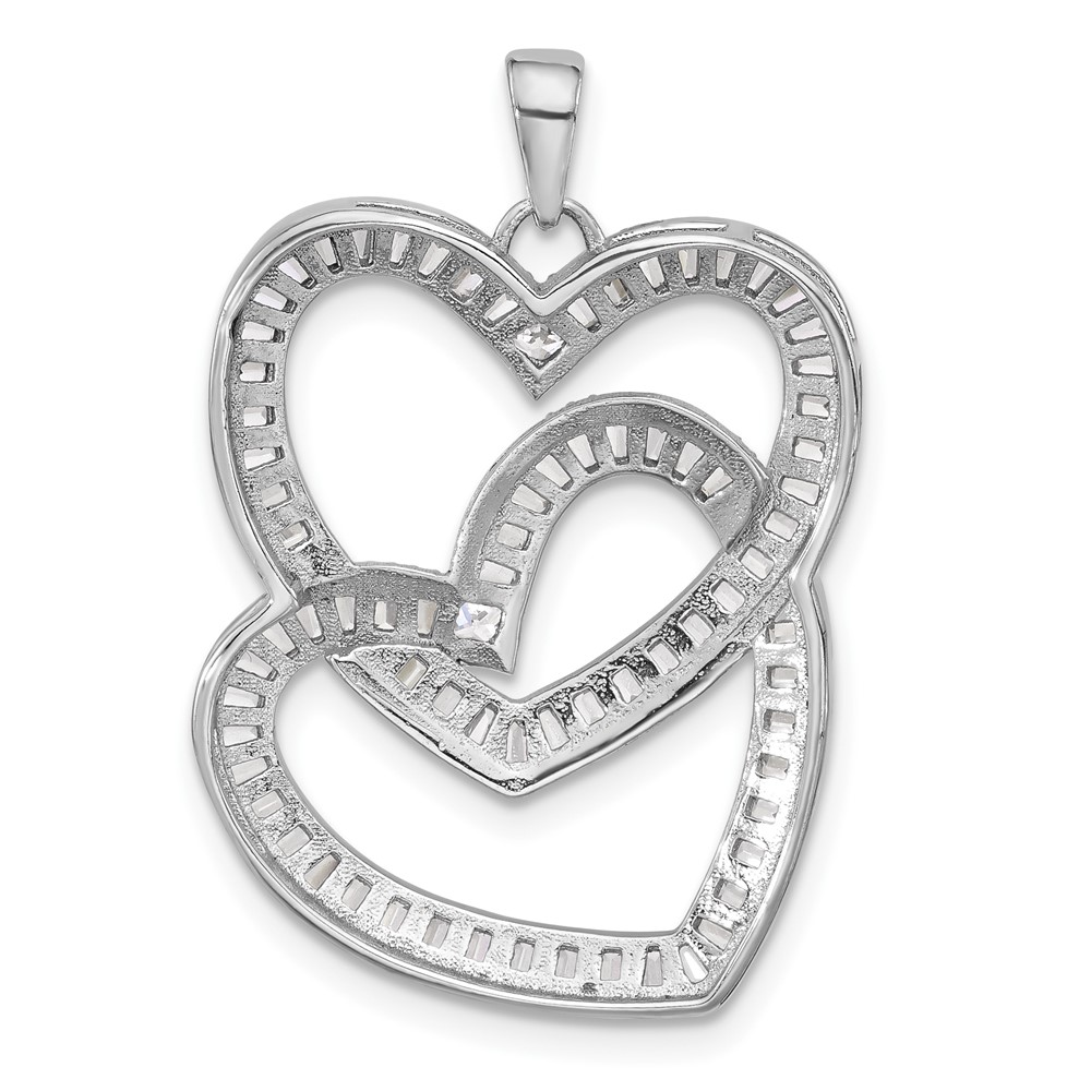 Sterling Silver Rhodium-plated Intertwined CZ Hearts Pendant