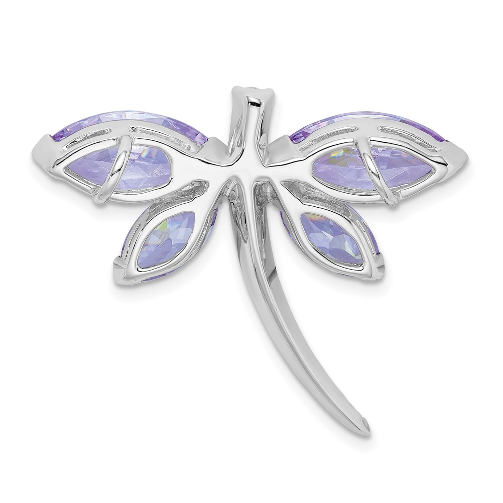 Sterling Silver Rhodium-plated Lavender CZ Dragonfly Slide