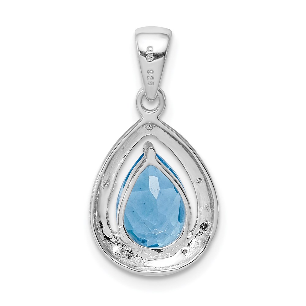 Sterling Silver Rhodium-plated Light Swiss Blue Topaz & Diamond Pendant