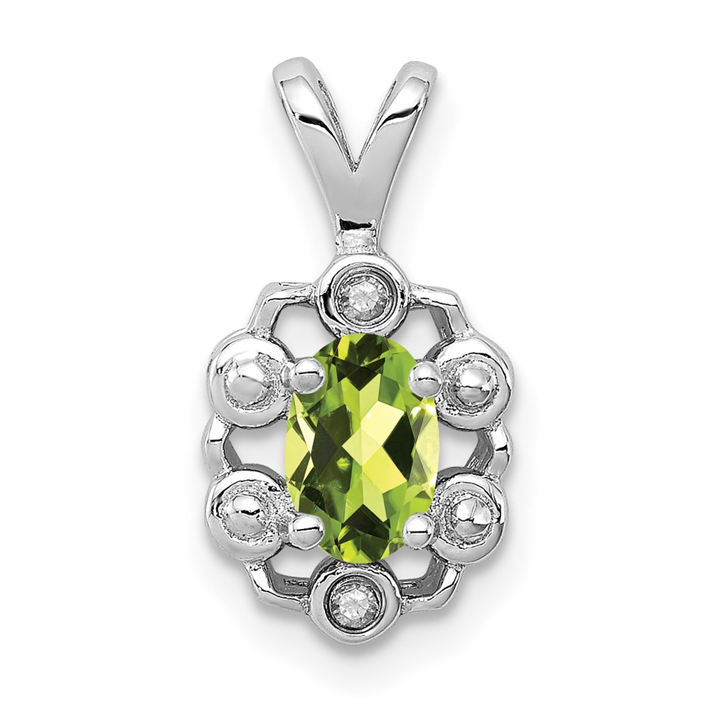 Sterling Silver Rhodium-plated Peridot & Diam. Pendant