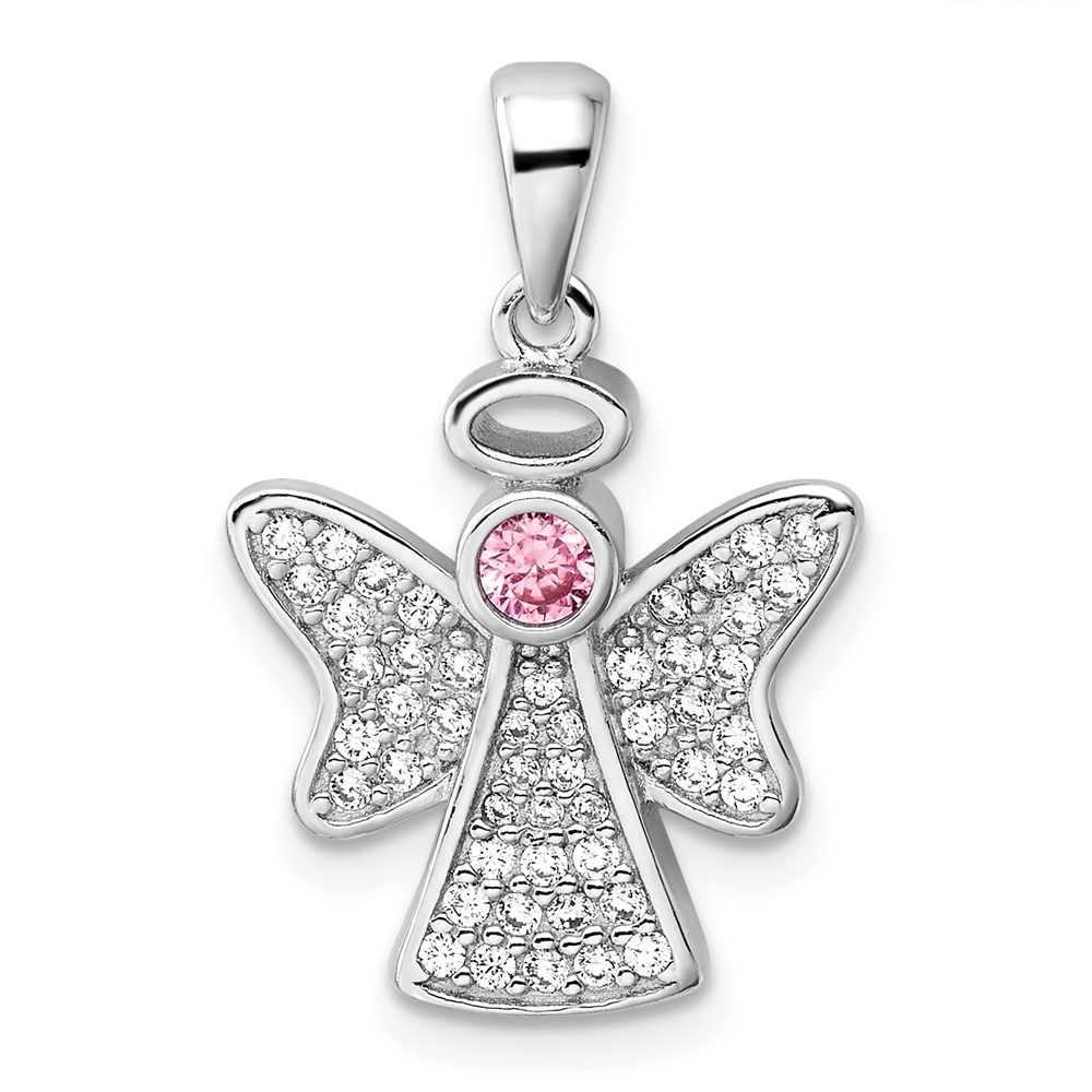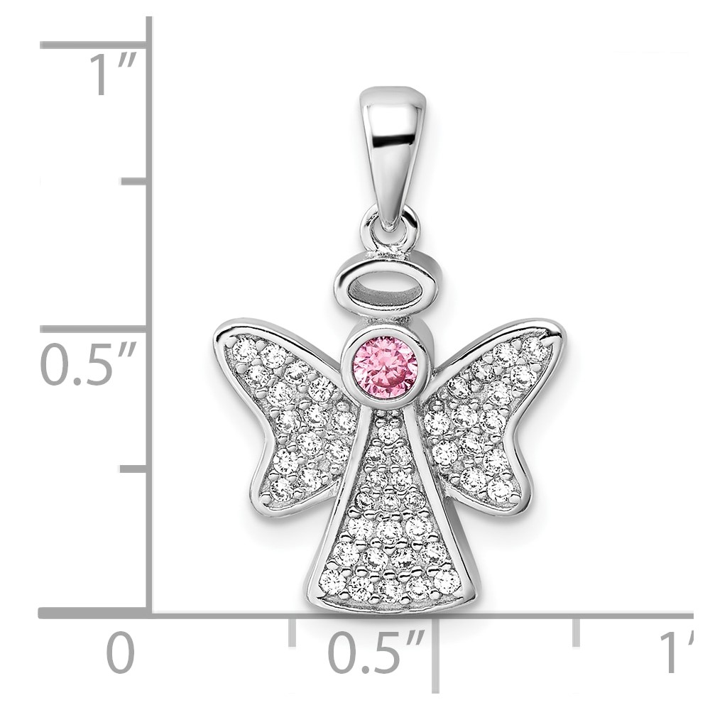 Sterling Silver Rhodium-plated Pink and Clear CZ Angel Pendant