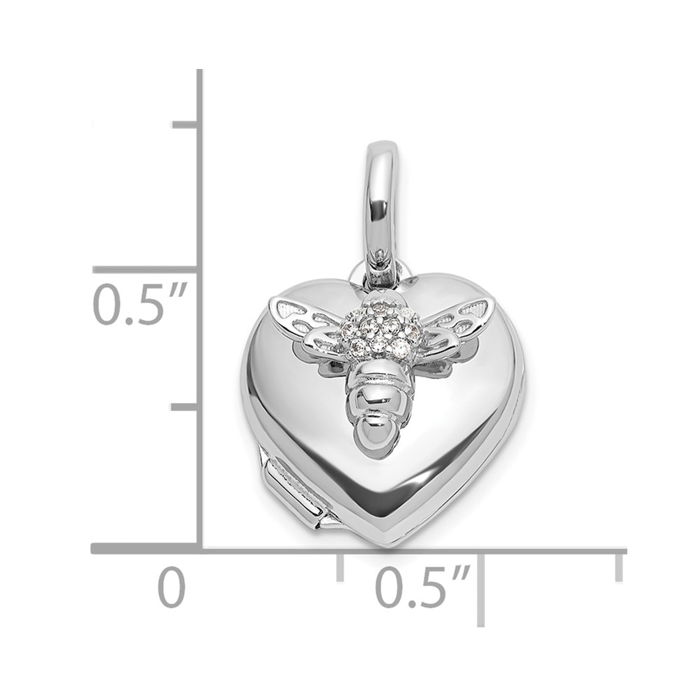 Sterling Silver Rhodium-plated Polished 12mm CZ Bee Heart Locket