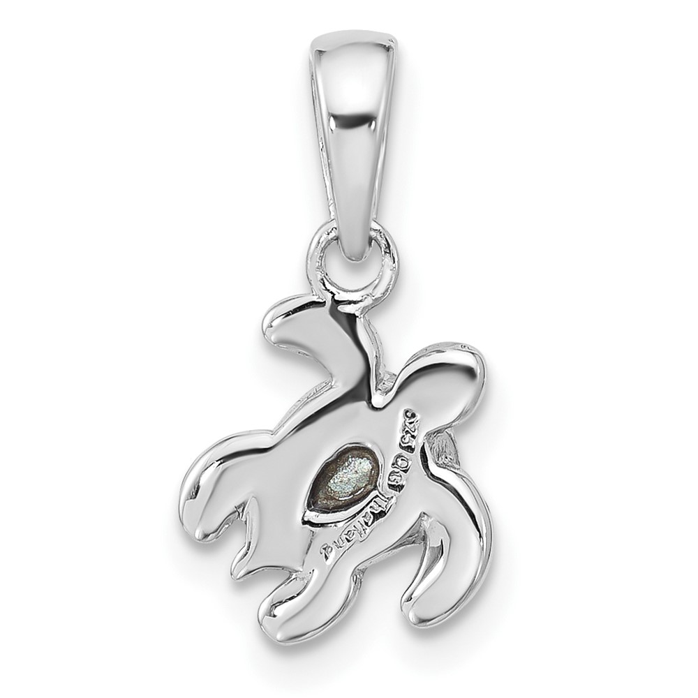 Sterling Silver Rhodium-plated Polished and Antiqued Crystal December Birthstone Turtle Pendant