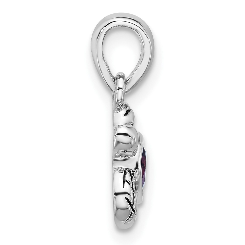 Sterling Silver Rhodium-plated Polished and Antiqued Crystal February Birthstone Turtle Pendant