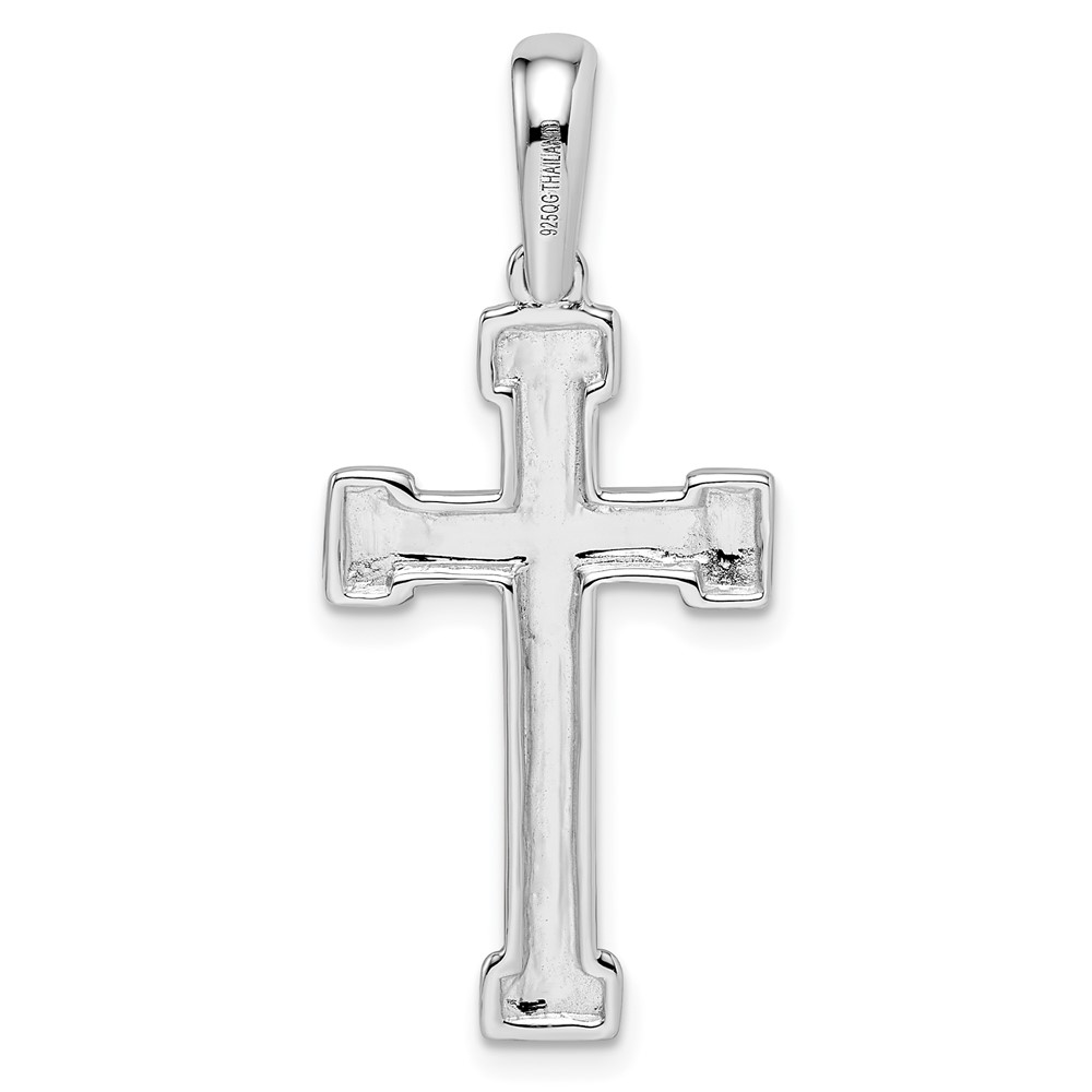Sterling Silver Rhodium-plated Polished and Laser Crucifix Pendant
