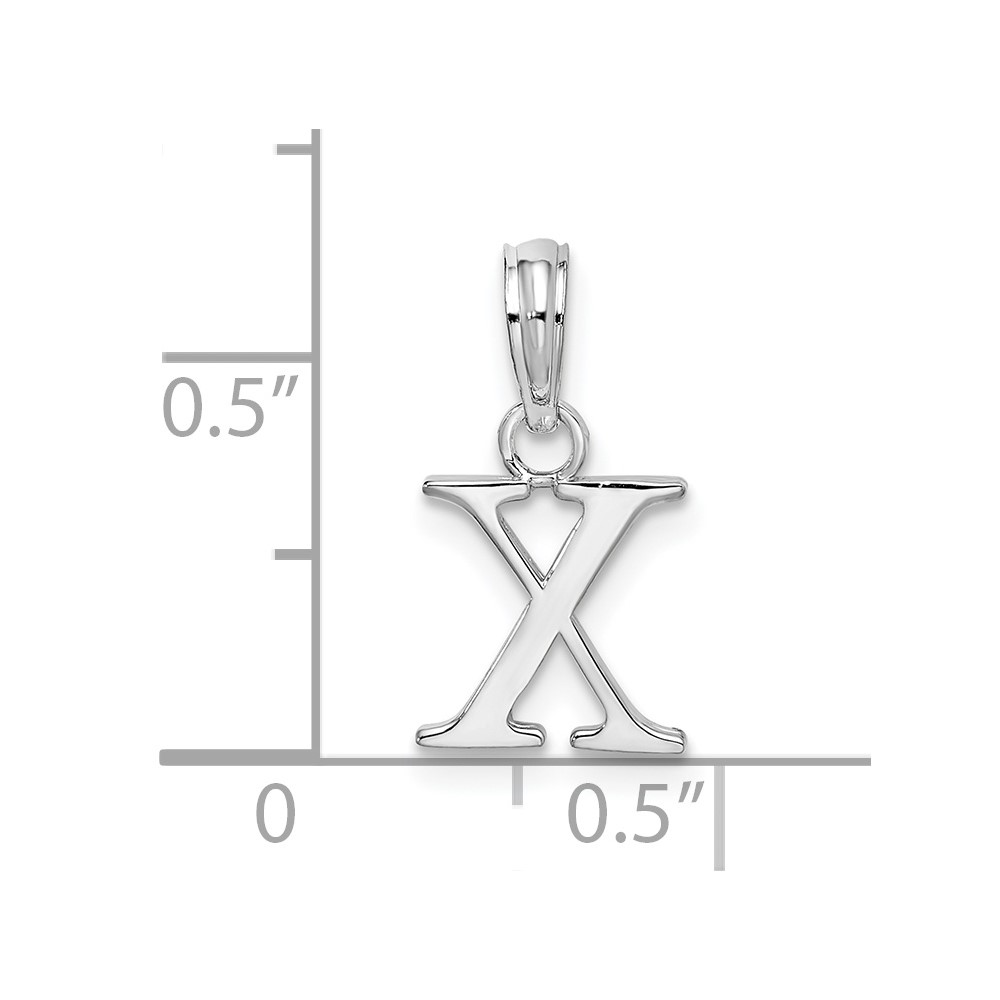 Sterling Silver Rhodium-plated Polished Block Initial -X- Pendant