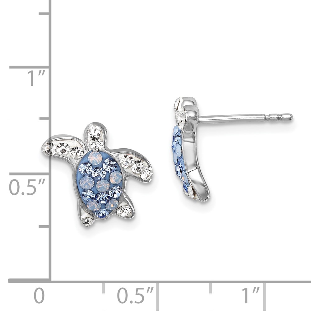 Sterling Silver Rhodium-plated Polished Blue and White Crystal Turtle Post Earrings