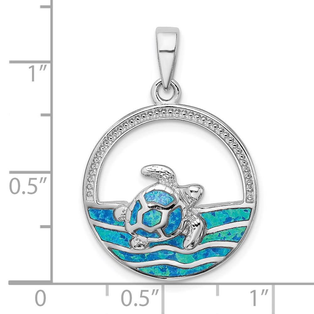 Sterling Silver Rhodium-plated Polished Blue Inlay Created Opal Turtle Pendant
