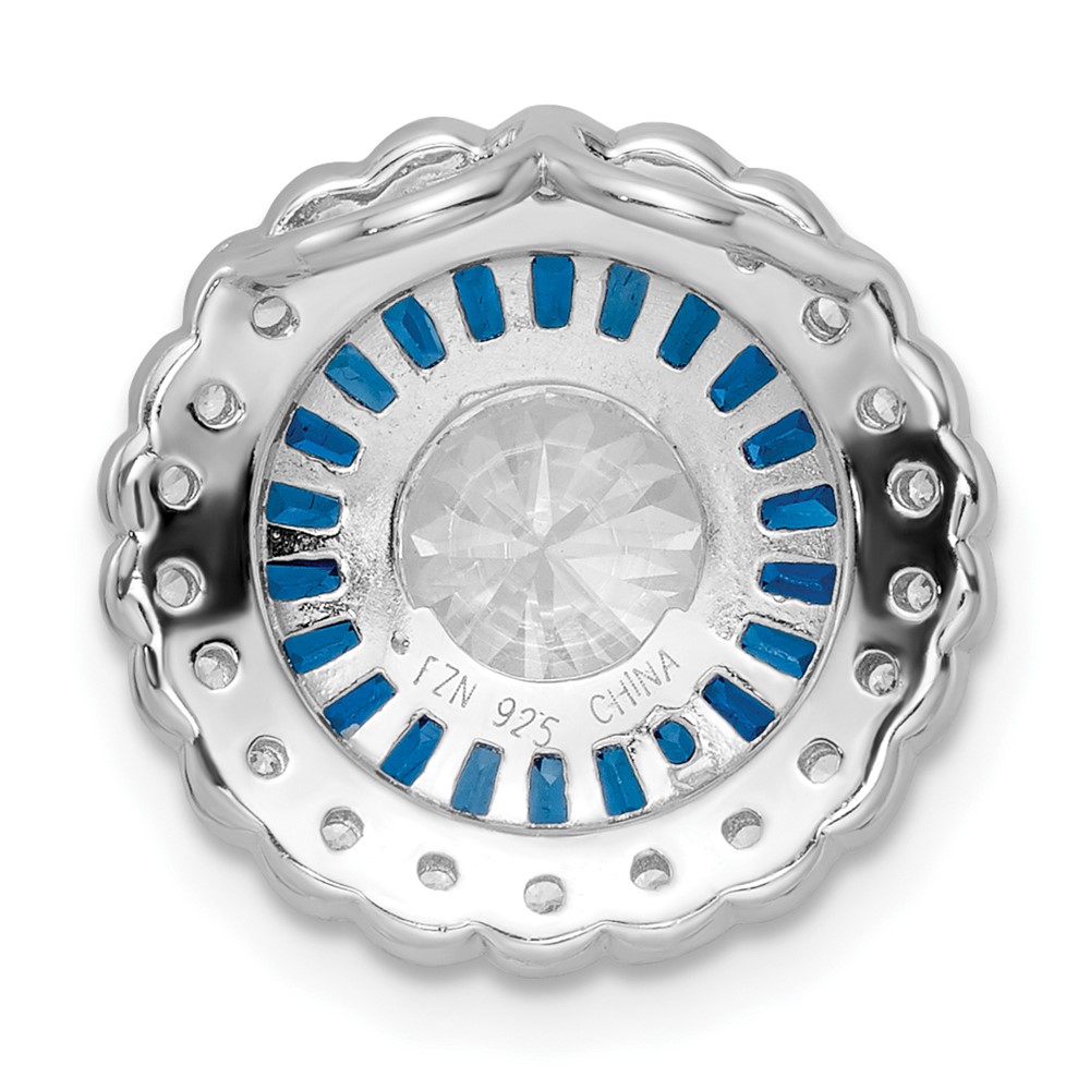 Sterling Silver Rhodium-plated Polished Blue & White CZ Round Chain Slide