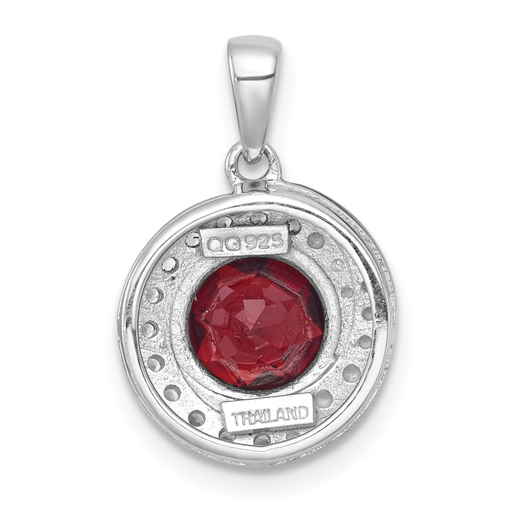 Be the first to review “Sterling Silver Rhodium-plated Polished Checker-cut Round Garnet and White Topaz Circle Pendant”