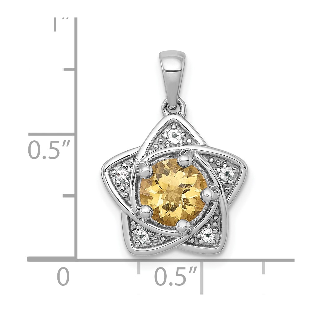 Sterling Silver Rhodium-plated Polished Citrine and White Topaz Star Pendant