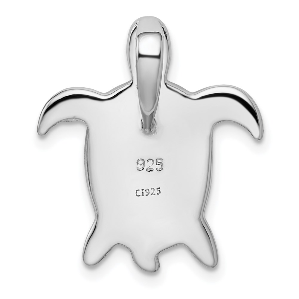 Sterling Silver Rhodium-plated Polished Created Blue Opal Turtle Slide