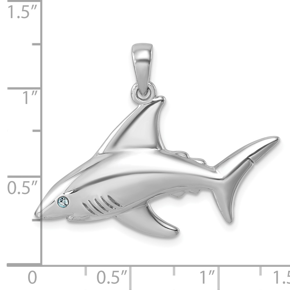 Sterling Silver Rhodium-Plated Polished Crystal Eye Shark Pendant
