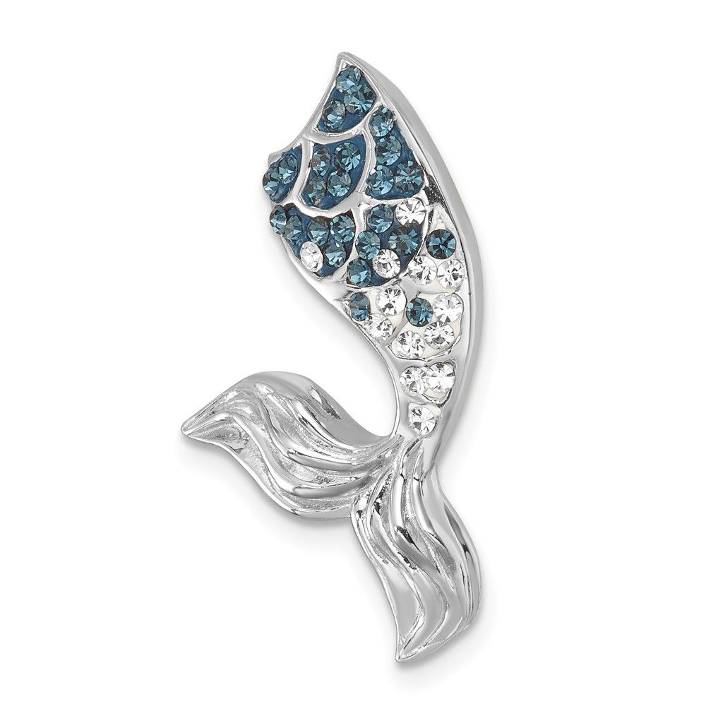 Sterling Silver Rhodium-Plated Polished Crystal Mermaid Tail Chain Slide