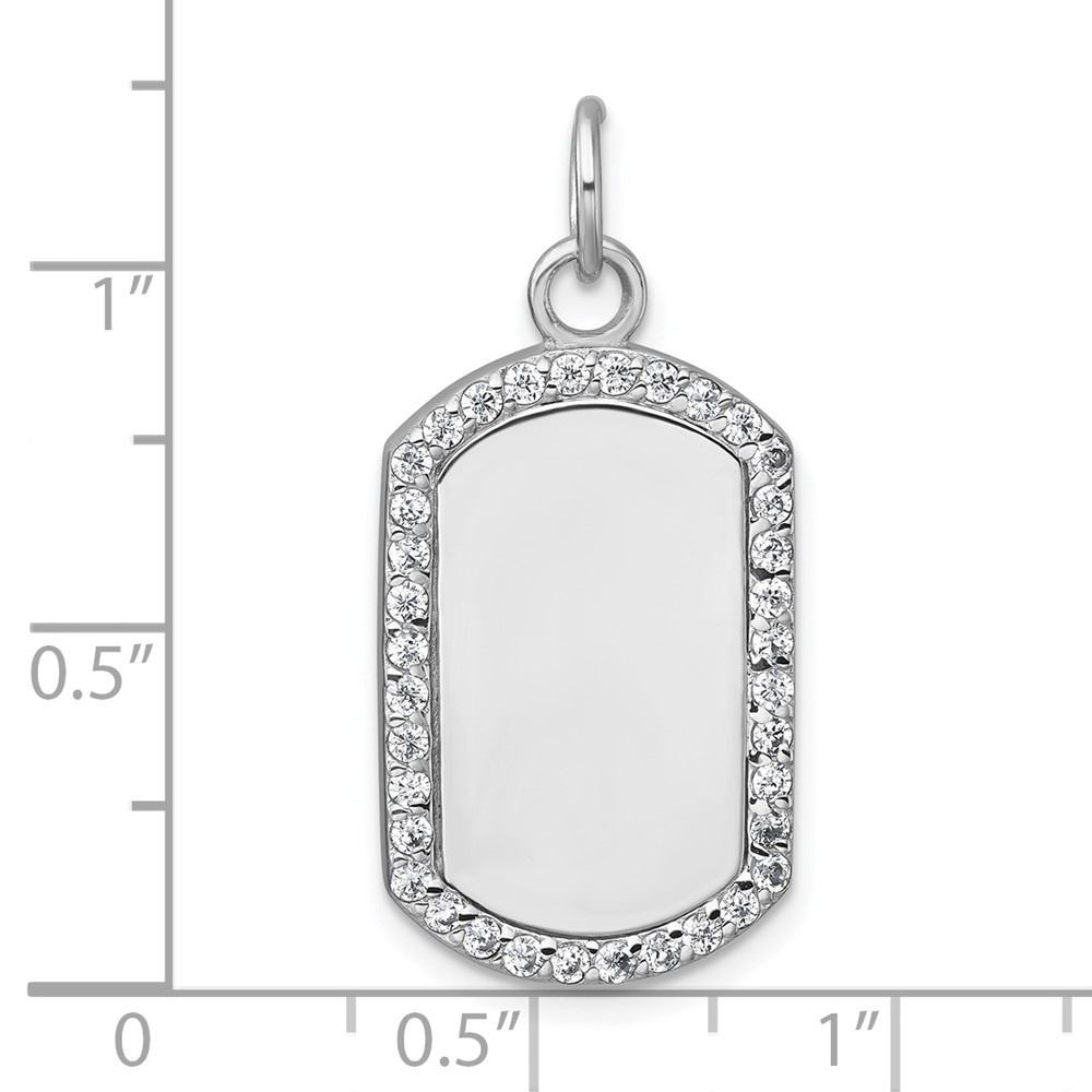 Sterling Silver Rhodium-plated Polished CZ Engraveable Dog Tag Pendant