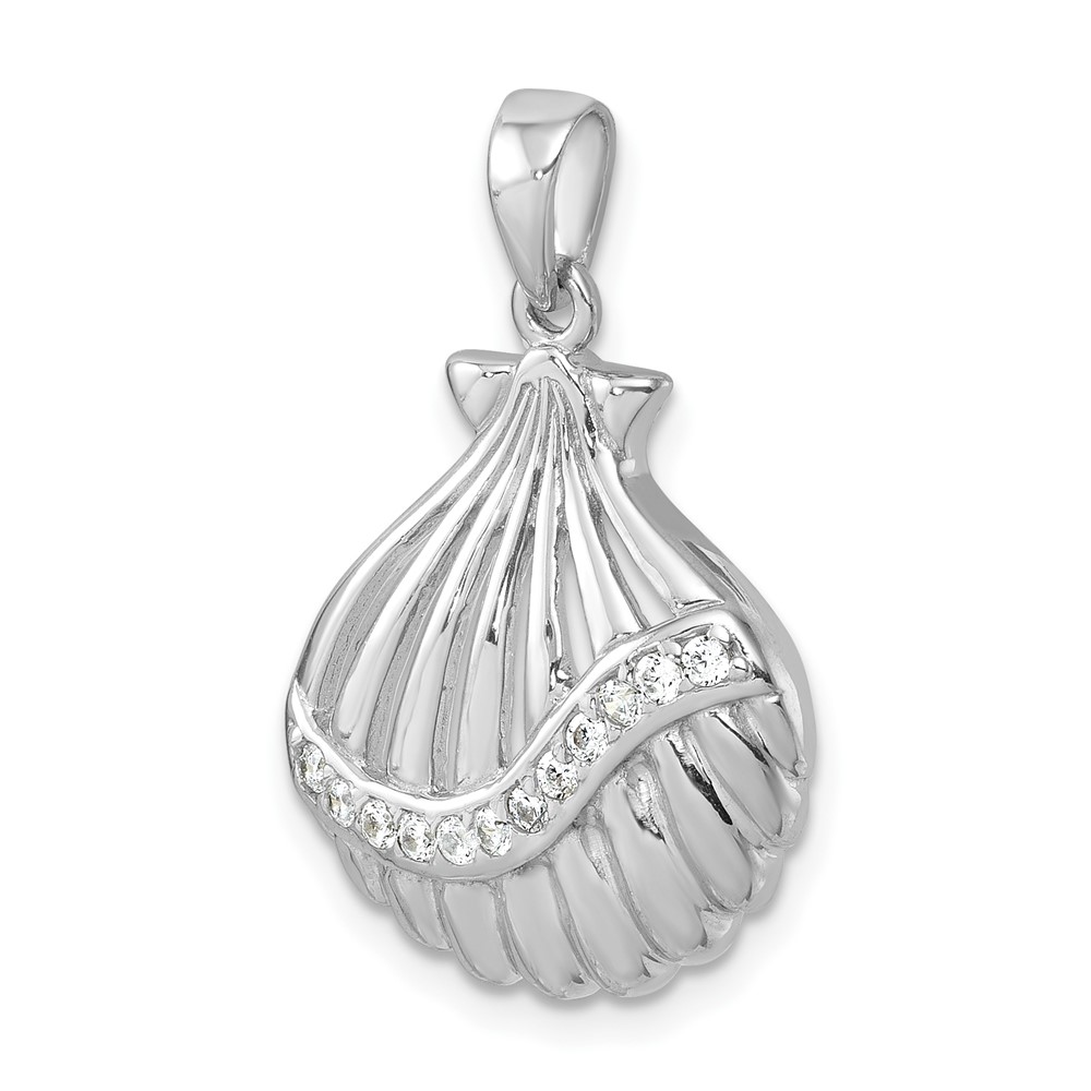 Be the first to review “Sterling Silver Rhodium-plated Polished CZ Scallop Shell Pendant” Cancel reply
