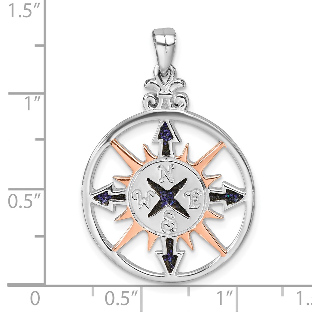 Sterling Silver Rhodium-plated Polished Enameled Compass Rose-tone Pendant