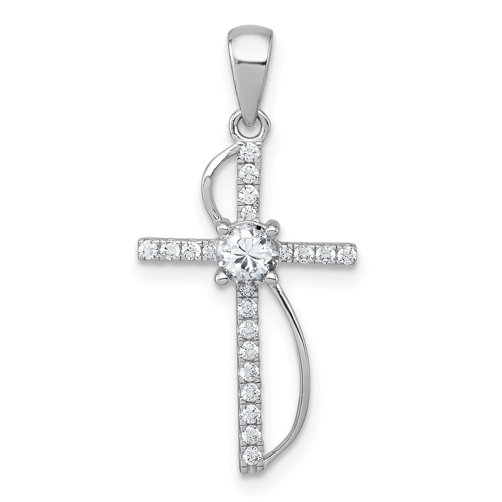 Be the first to review “Sterling Silver Rhodium-plated Polished Fancy CZ Latin Cross Pendant”