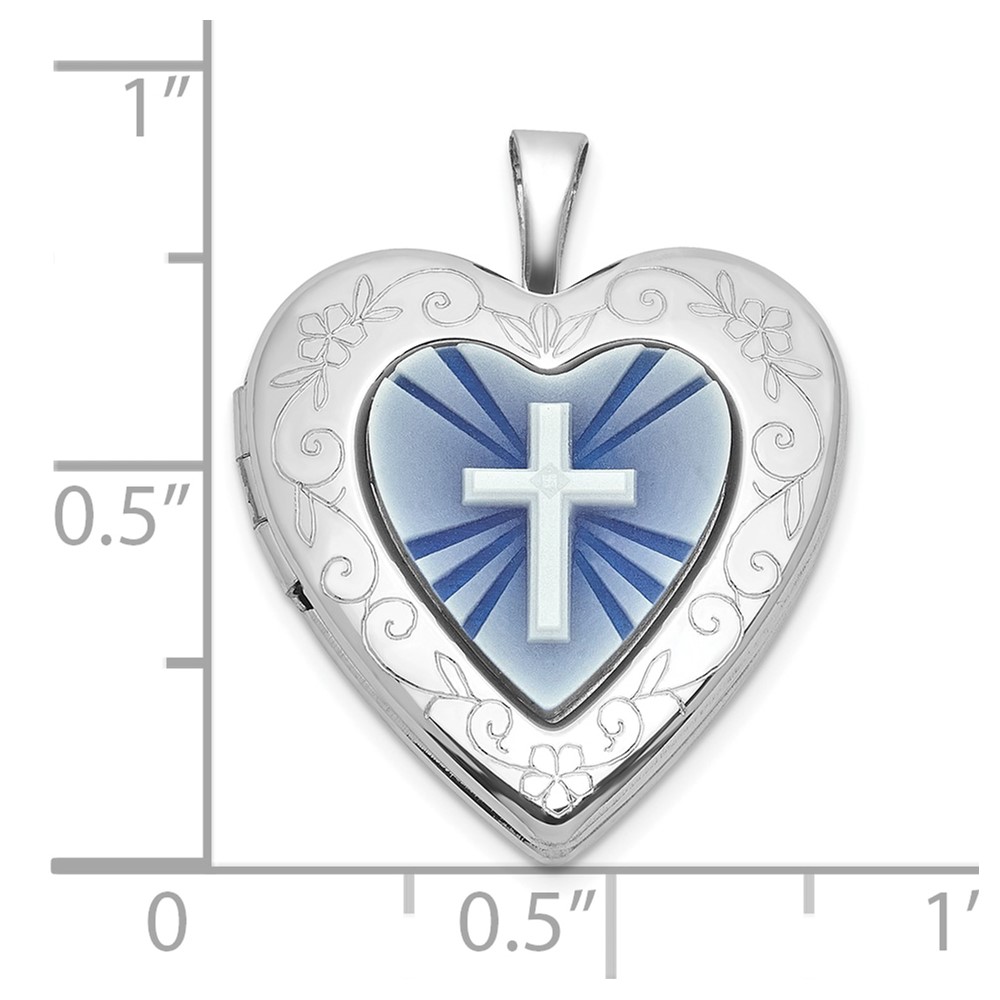 Be the first to review “Sterling Silver Rhodium-plated Polished Front/Brushed Back Blue Cross Resin Cameo 20mm Heart Locket” Cancel reply