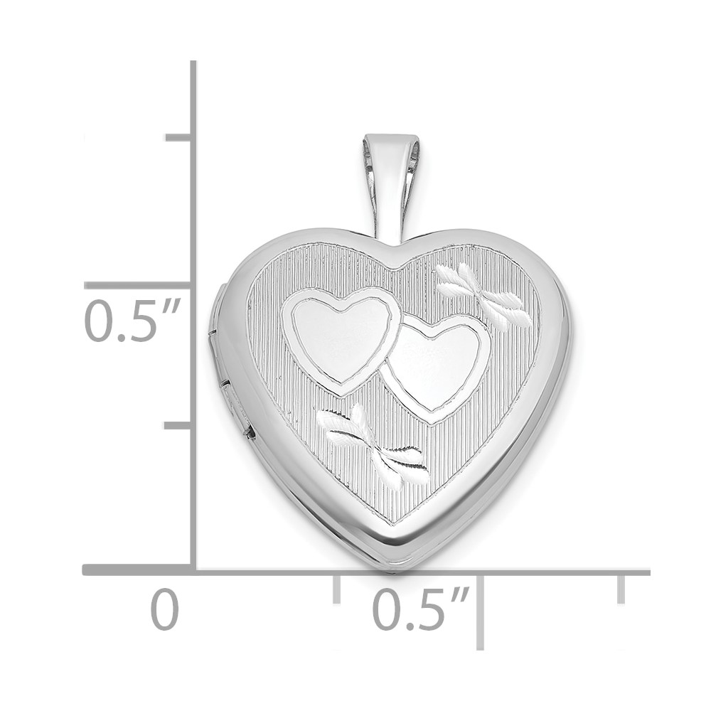 Sterling Silver Rhodium-plated Polished Front/Brushed Back Diamond-cut Twin Hearts 16mm Heart Locket
