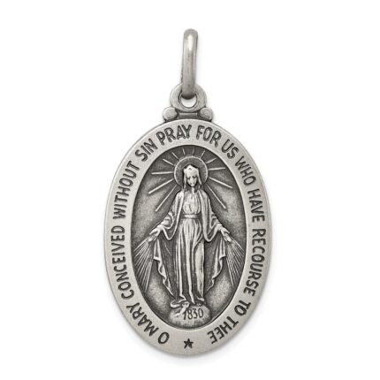 Be the first to review “Sterling Silver Rhodium-plated Polished Front/Brushed Back Miraculous Medal 20mm Oval Locket” Cancel reply