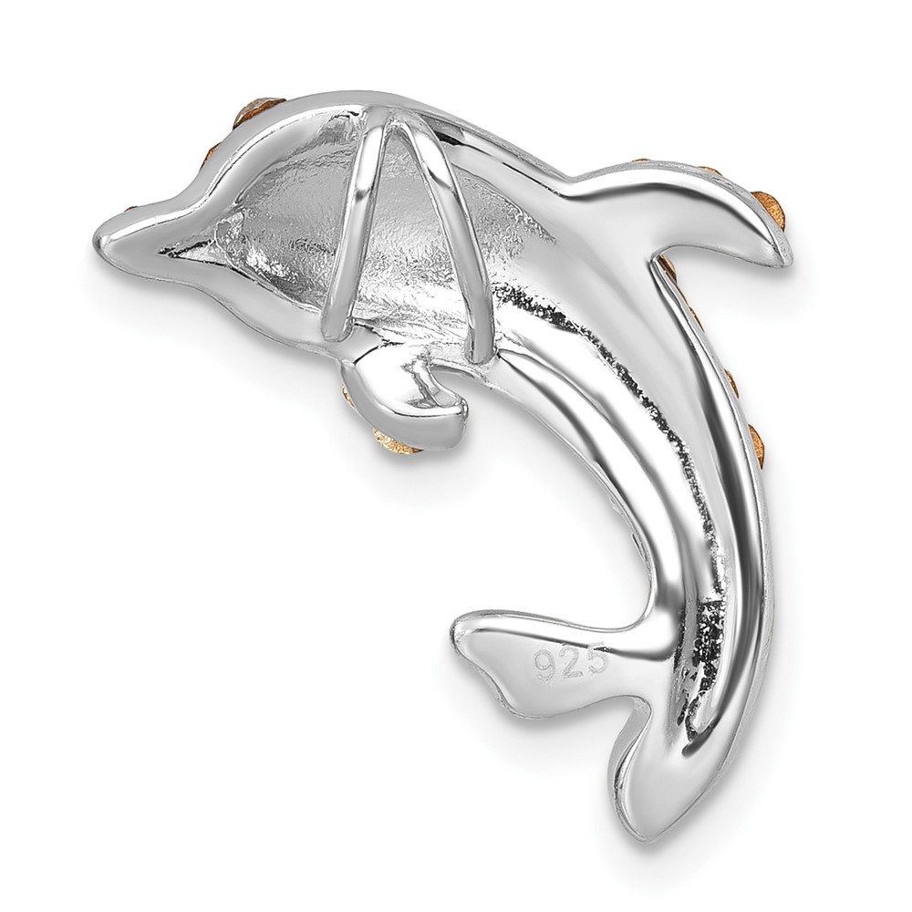 Sterling Silver Rhodium-Plated Polished Gray and White Crystal Dolphin Chain Slide