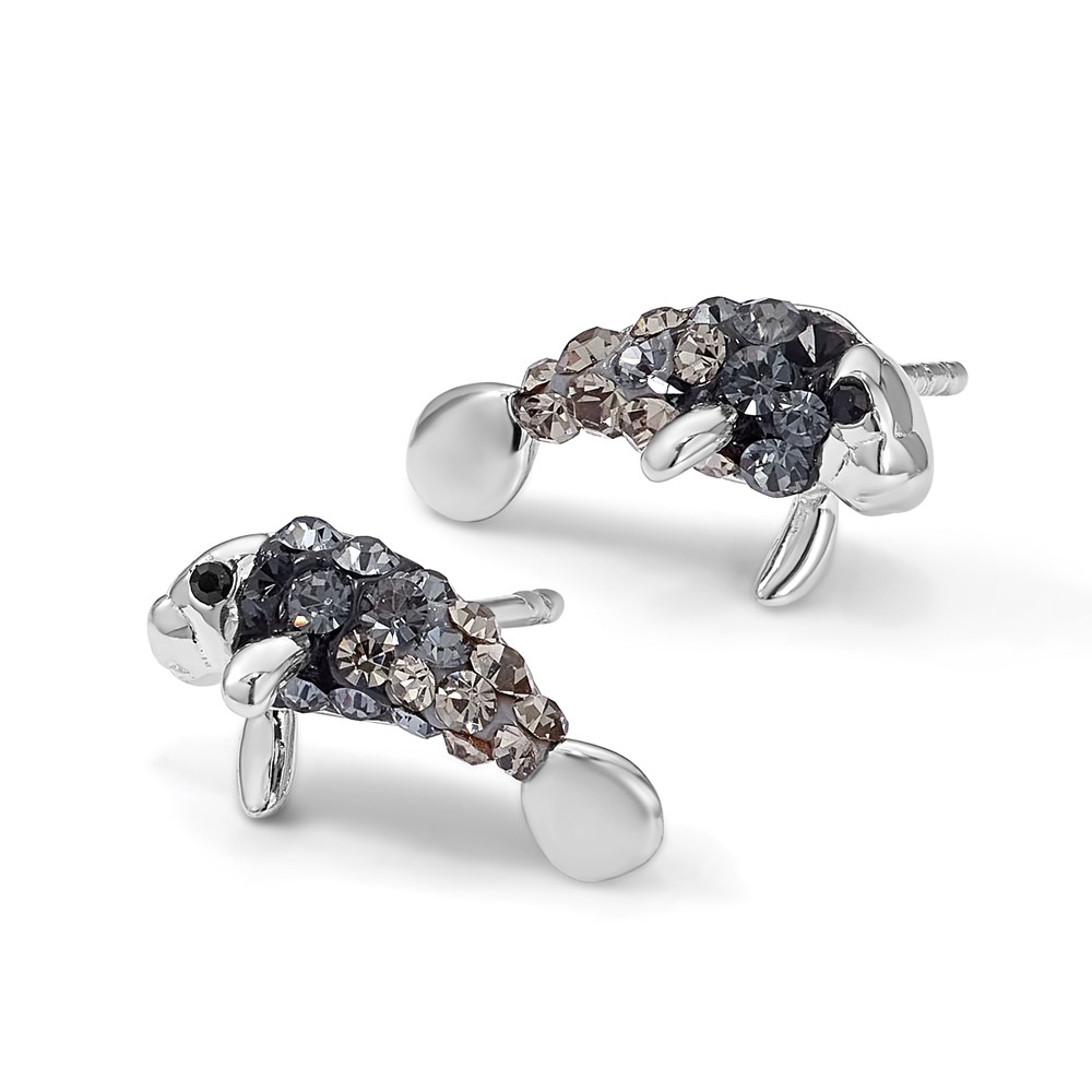 Sterling Silver Rhodium-plated Polished Grey Crystal Manatee Post Earrings