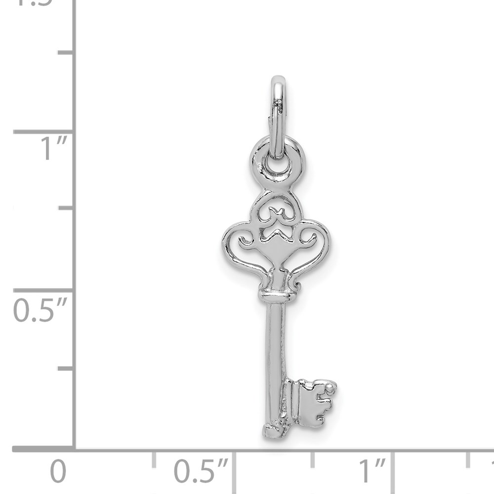 Sterling Silver Rhodium-plated Polished Key Pendant