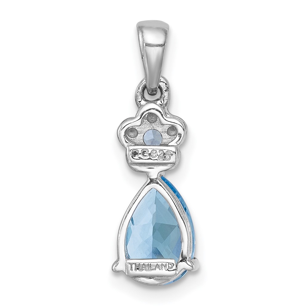 Sterling Silver Rhodium-plated Polished Light Swiss Blue Topaz Teardrop and Flower Pendant