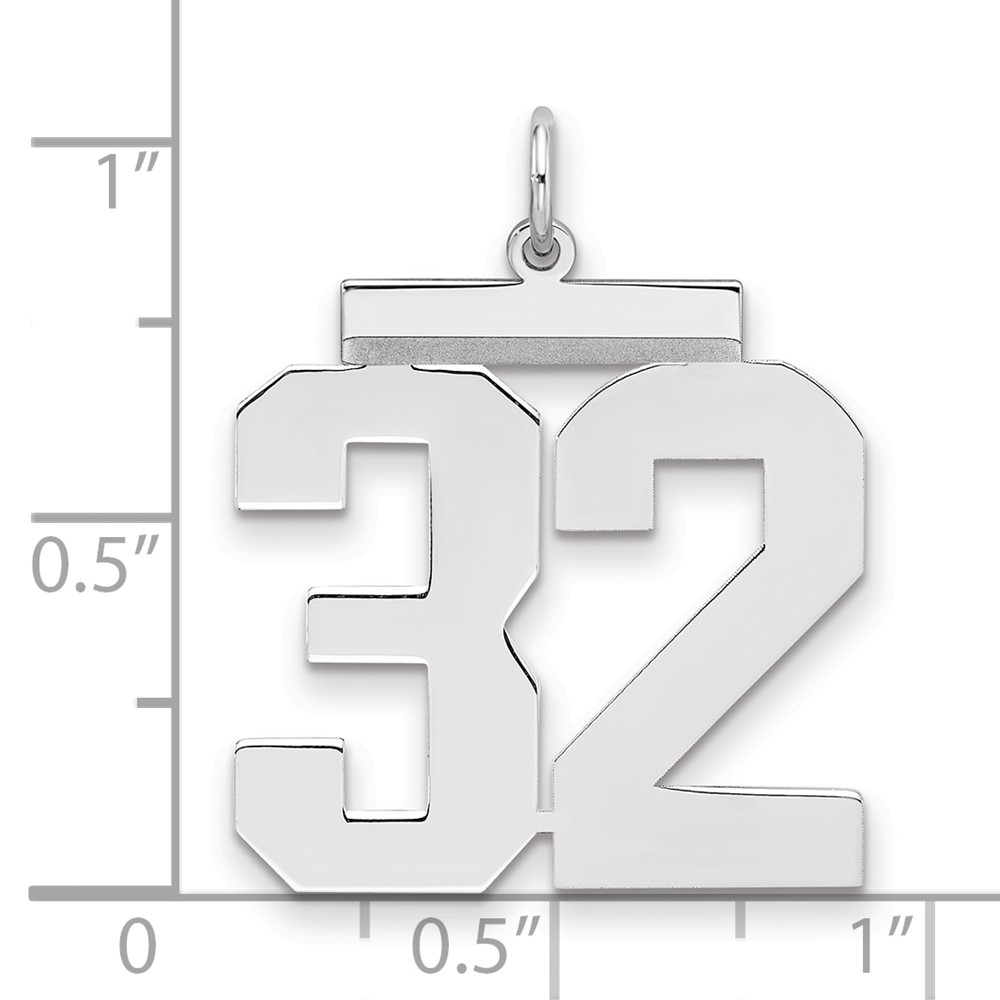 Sterling Silver/Rhodium-plated Polished Number 32 Charm