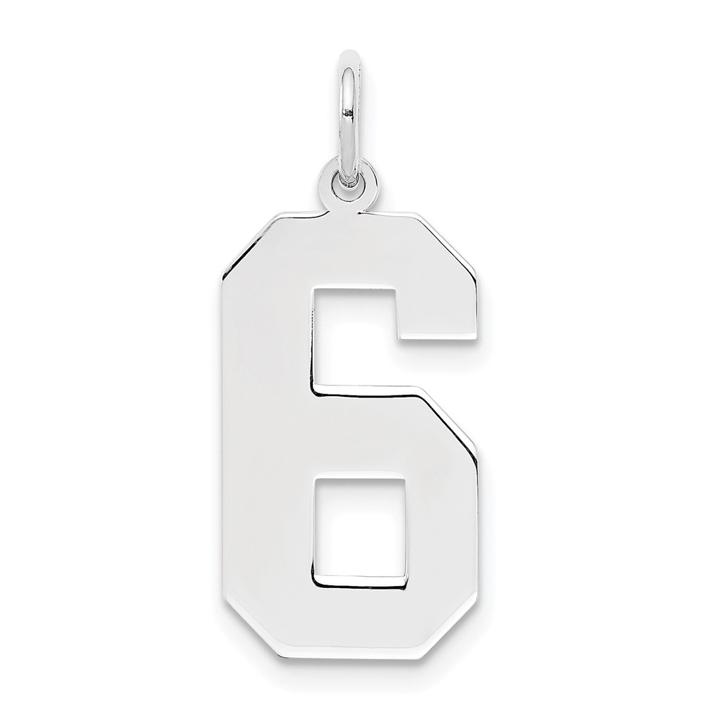 Sterling Silver/Rhodium-plated Polished Number 6 Charm