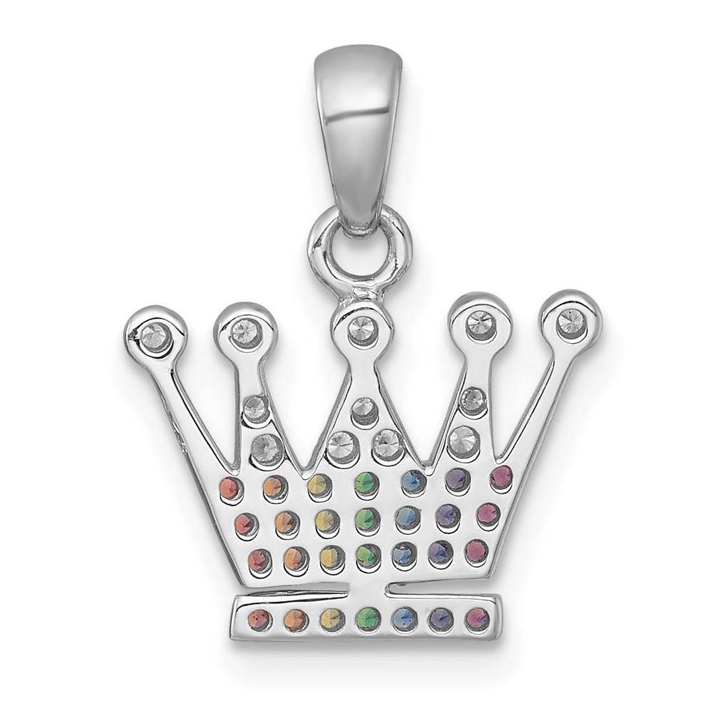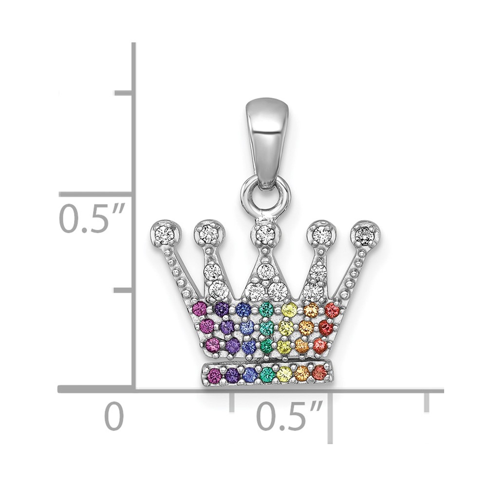 Sterling Silver Rhodium-plated Polished Rainbow Nano Crystals Crown Pendant