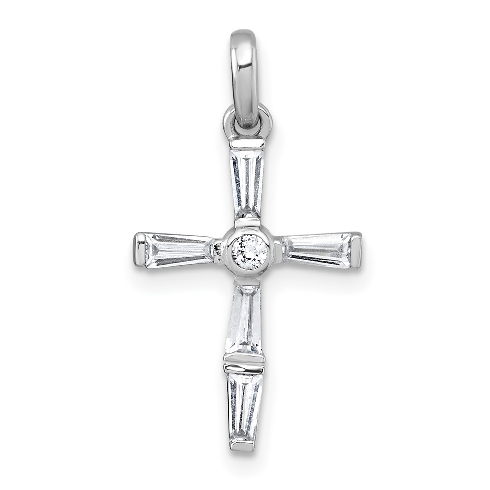 Sterling Silver Rhodium-plated Polished White Baguette CZ Cross Pendant