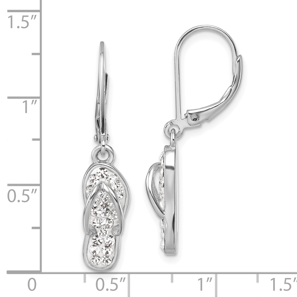 Sterling Silver Rhodium-plated Polished White Crystal Flip Flop Dangle Leverback Earrings