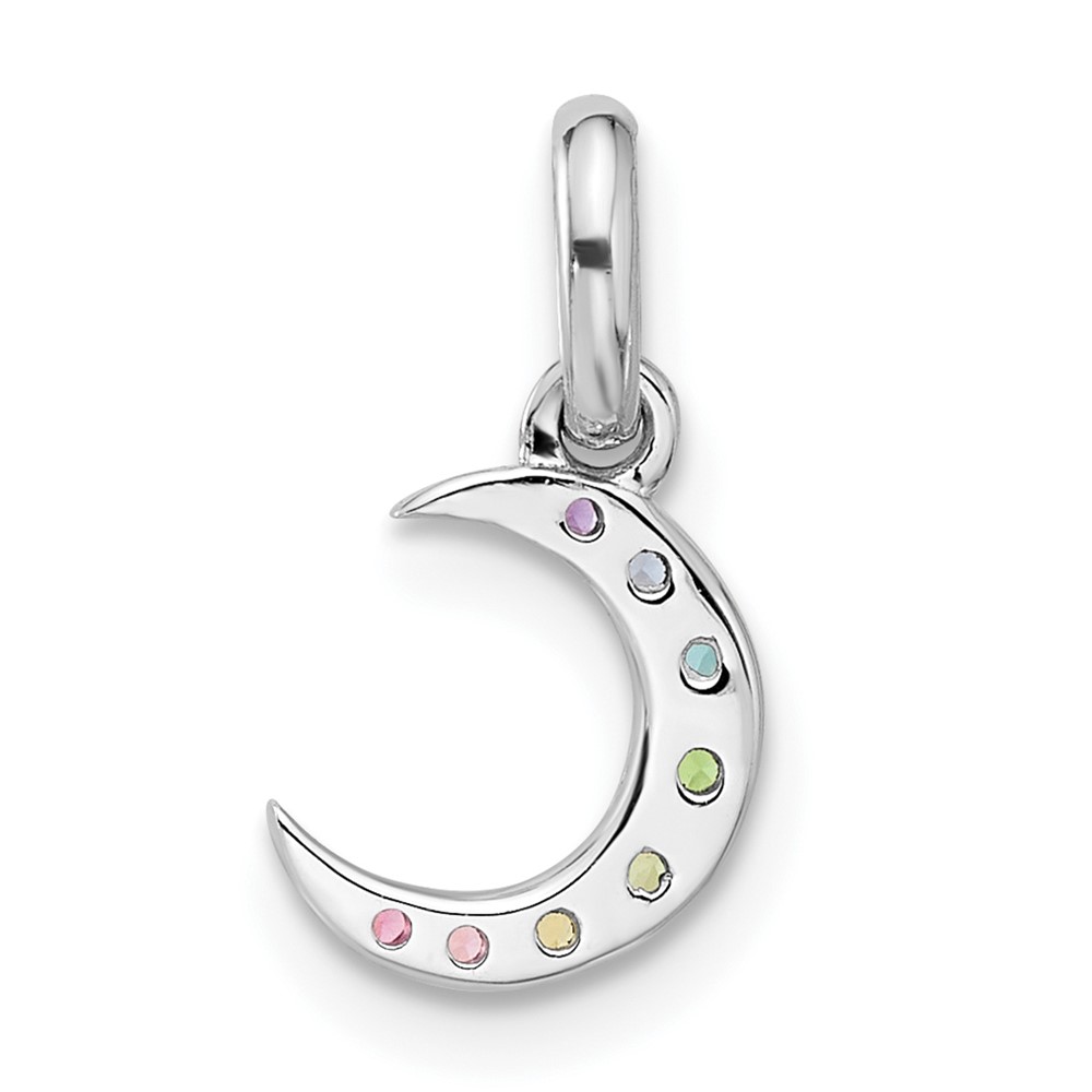 Sterling Silver Rhodium-plated Rainbow Crystal Moon Children’s Pendant