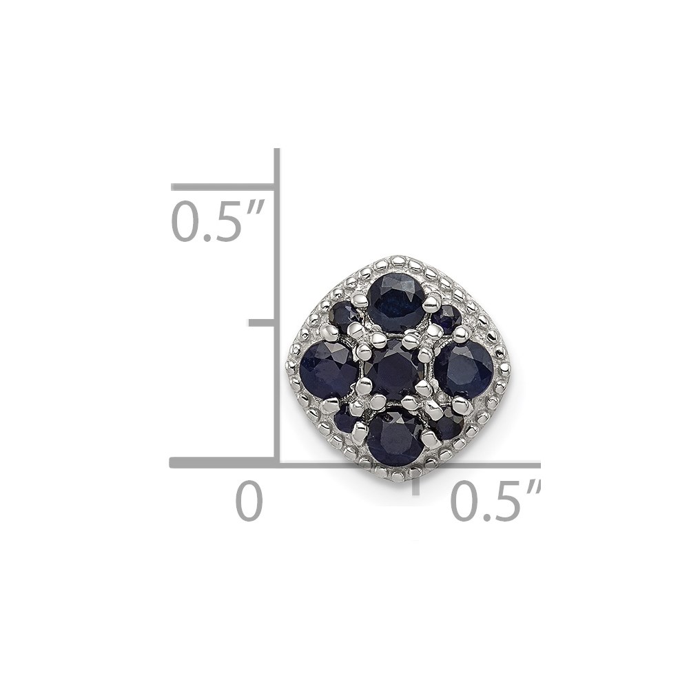 Sterling Silver Rhodium Plated Sapphire Square Pendant Slide